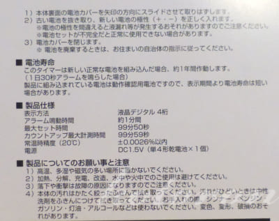 そして、このタイマーのいいところは電池がボタン電池ではなく、単四乾電池だということです。乾電池の方が、お安いし充電池で代用もできますしね。
