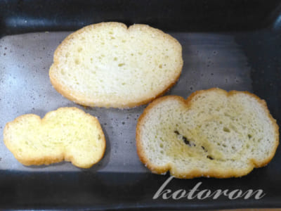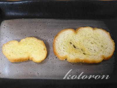 同じ袋の中に入っているラスクの、一番小さいの(左)と、一番大きいの(右)を並べてみました。これだけだと大きさがよくわからないので、