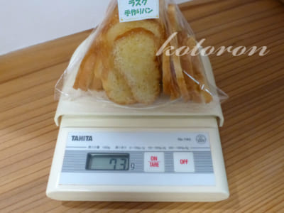 そして、実食です。薄いので、サクっさくと、簡単に食べられます。ハラダのラスクと比較してみましたが、味はほとんど同じです(美食家の方に言わせれば違うかもしれませんが、素人な私にはほどんど同じです)。硬さは、くわのみさんのほうが、薄くて柔らかい(密度が低い?)ので食べやすいです。子供たちもおいしいと、バグバク食べました。