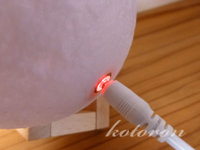 充電はされていなかったので、まずは、付属の充電ケーブルをさして充電しました。充電中でもライトを付けたり色や明るさの調節もできます。