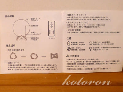 説明書によると、明るさ最大でも6時間、最小の場合は40時間つかえます。ベットサイドに置いておいて、ナイトライトにもよさそうですね。