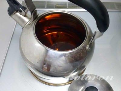 我が家では、普通のヤカンに入れて沸騰させ、粗熱をとってからそのまま冷蔵庫に入れています。実はヤカンは2個あって、朝晩に2回沸かしています。消費が激しいです。