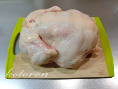 丸鶏が大きすぎてフタにくっつきそうなので、