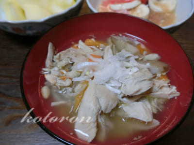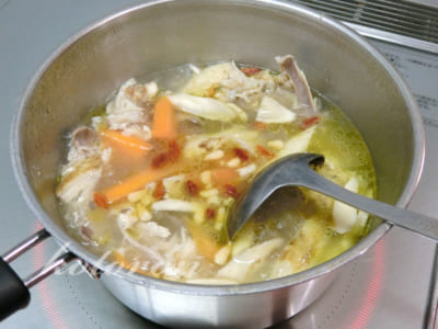 そこに、余った鶏肉・ニンジン・ゴボウ・塩を追加。