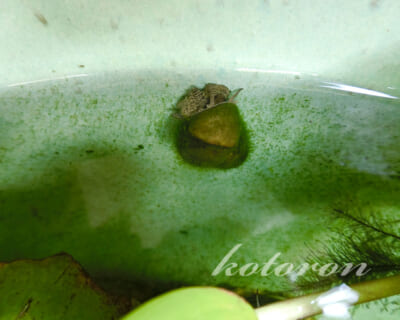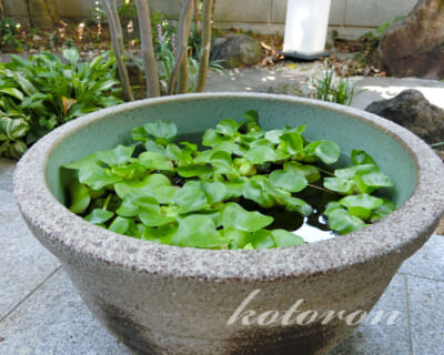 お庭にある、金魚鉢。(睡蓮鉢という名前で売られていたものですが)