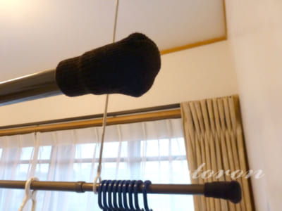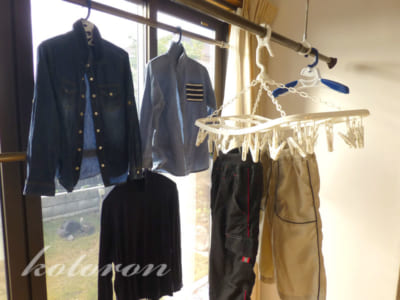 この2本の竿、普段はこんな感じに服を吊るして使います。