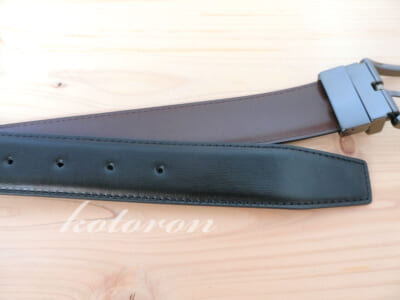 スーツによさそうなブラックのシンプルなベルトですが、実はこれリバーシブル。