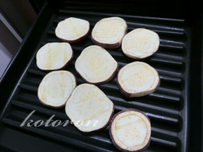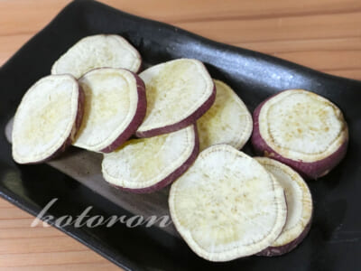 良く洗ったサツマイモを5mm幅ぐらいに切って、