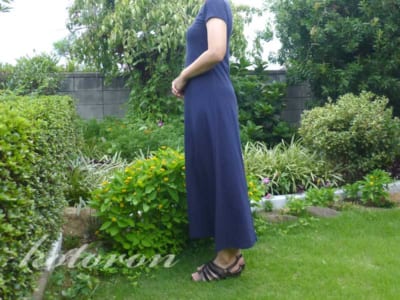 Aラインフレアで、足の太さをカバーしてくれるマキシ丈のワンピースです♪