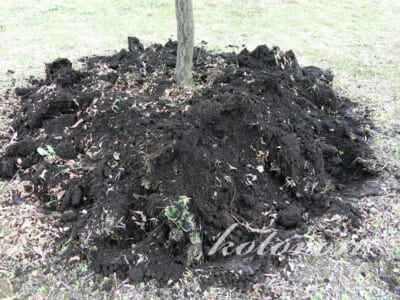 大きなシャベルで周りを直径1mぐらい掘り起こします。