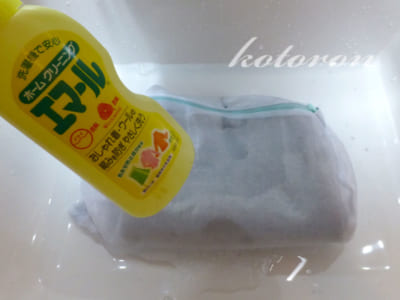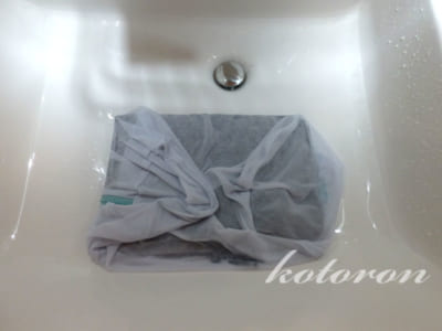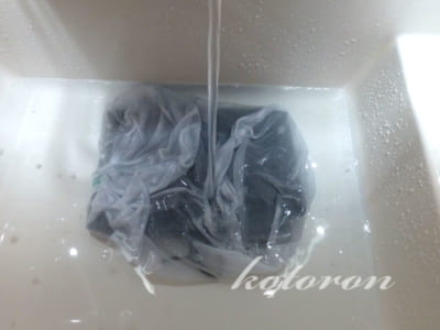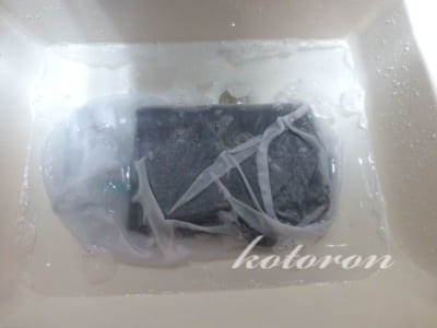 洗濯ネットごと裏返して、さらに押し洗いします。