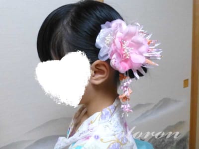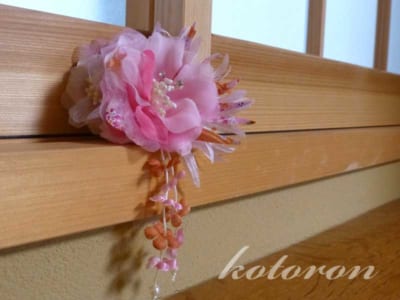 髪の毛はお団子にして、大きめの和風コサージュをON。